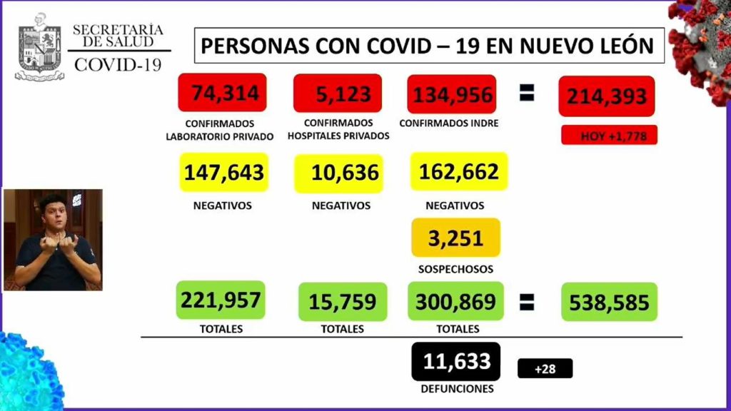 Becerra dijo que actualmente hay 17 mil 331 casos activos en Nuevo León, de los cuales mil 438 son menores de 18 años.