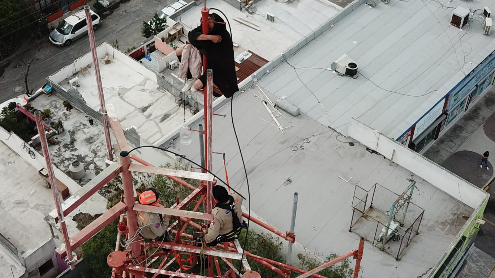Un presunto problema familiar provocó que un hombre amenazara con suicidarse al subir a una antena de telefonía de unos 40 metros en la colonia San Miguel en el municipio de Apodaca.