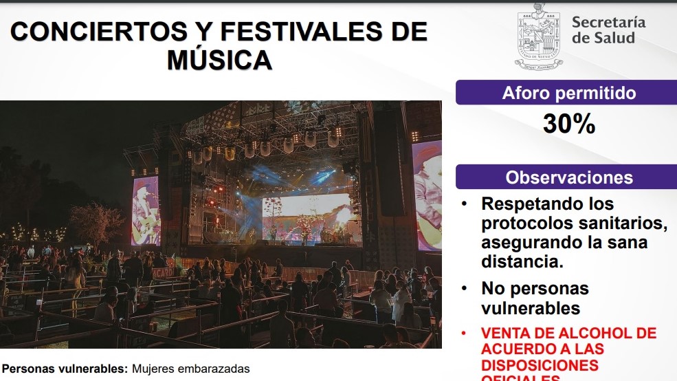 Los estadios deportivos, plazas de toros, salones de fiestas infantiles, graduaciones, quintas, ligas deportivas infantiles y parques turísticos podrán operar al 50 por ciento.