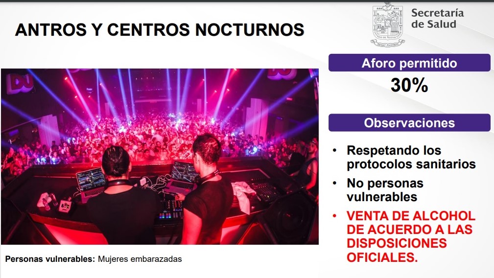 Mientras que en la mayoría de los negocios y establecimientos que ya estaban operando se aumentó el aforo permitido del 50 al 70 por ciento, y se liberó el horario, que estaba restringido a las 0:00 horas.