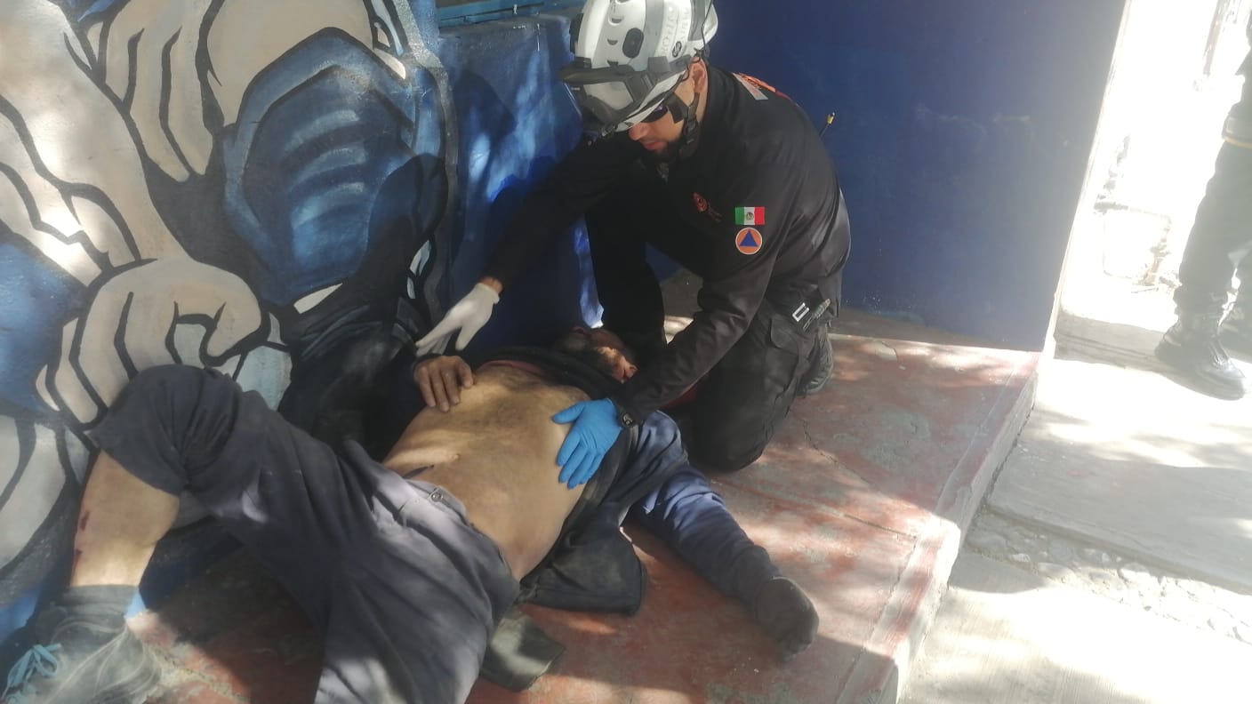El herido fue identificado como Andrés Monsiváis Vázquez de 51 años, quien pasaba por la zona no se percató de la alcantarilla sin tapa y cayó aproximadamente unos 2 metros.