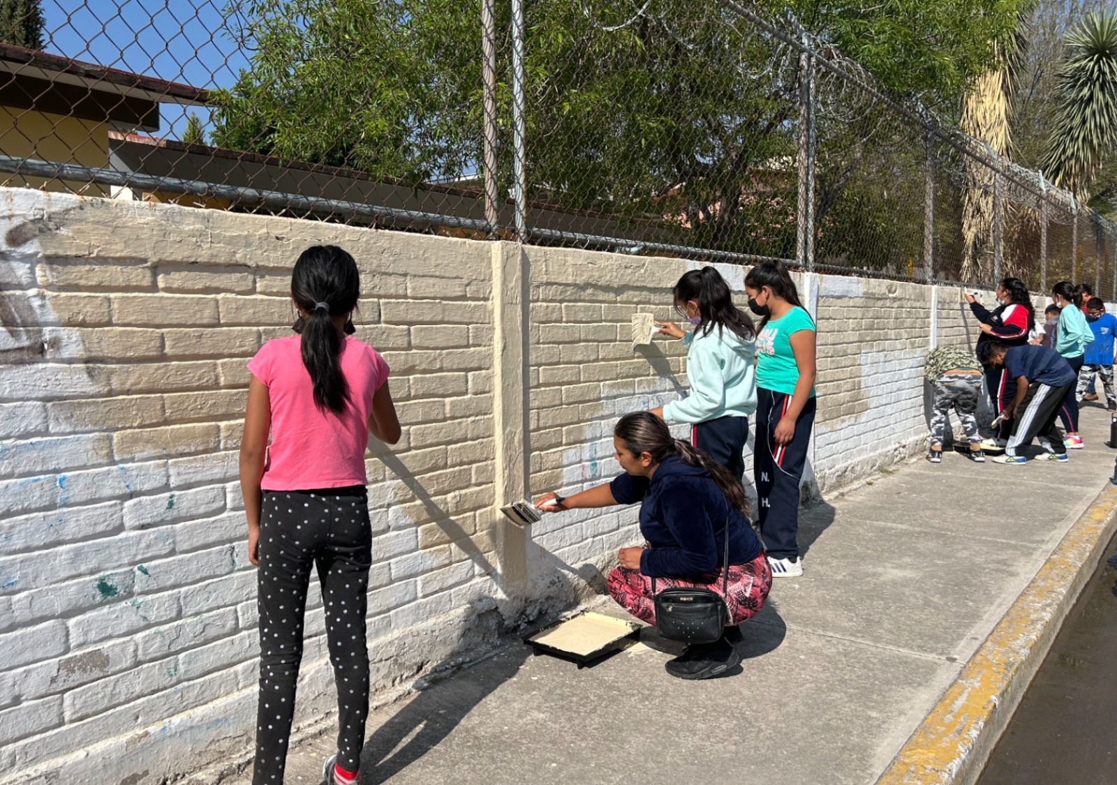 En las instalaciones educativas de Niños Héroes, Himno Nacional se pintó la barda perimetral exterior de la escuela, y participaron 80 niños, maestros y 15 padres de familia. Además, se entregaron también tres tambos para la separación de residuos.