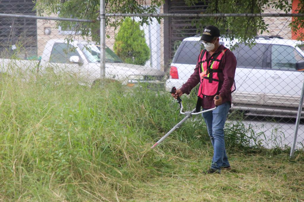 Eduardo Martínez, titular de la dependencia municipal, explicó que, a la fecha, han retirado más de 840 mil metros cuadrados de hierba en las escuelas de Guadalupe.