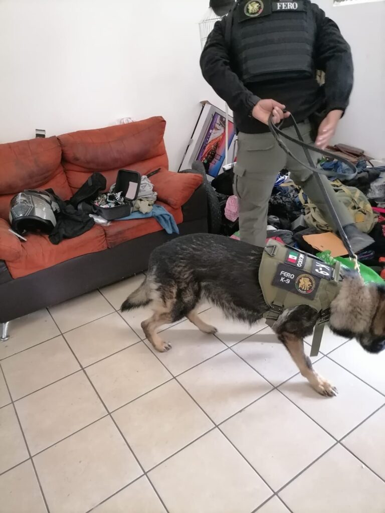 Con apoyo de binomios caninos realizaron los cateos y lograron ubicar la droga que tenían almacenados en las casas.
