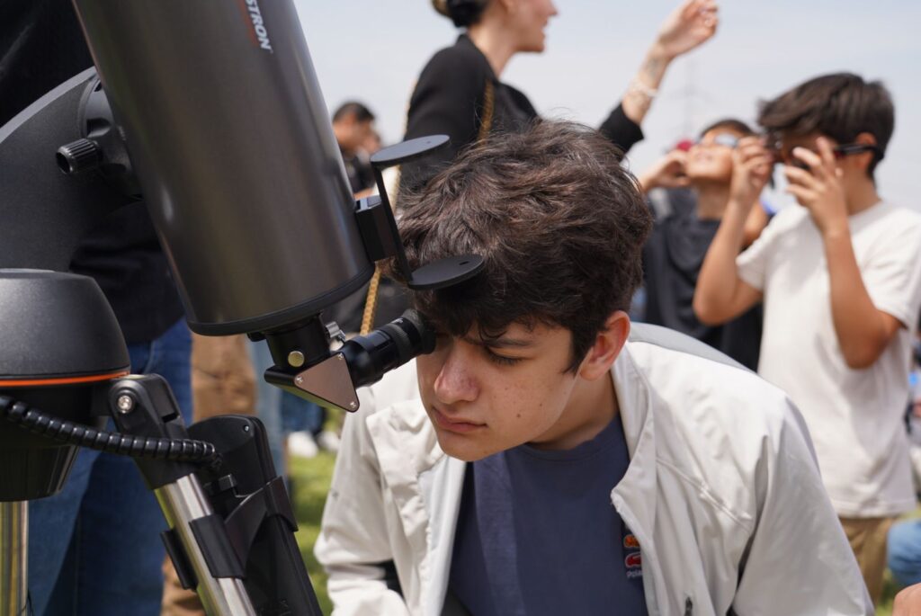 En universidades como la Autónoma de Nuevo León en su explanada en su campus principal, como en la De Monterrey, alumnos y catedráticos montaron improvisados observatorios para con telescopios profesionales, equipos de cómputo y video o fotografía, captar las imágenes de este eclipse.