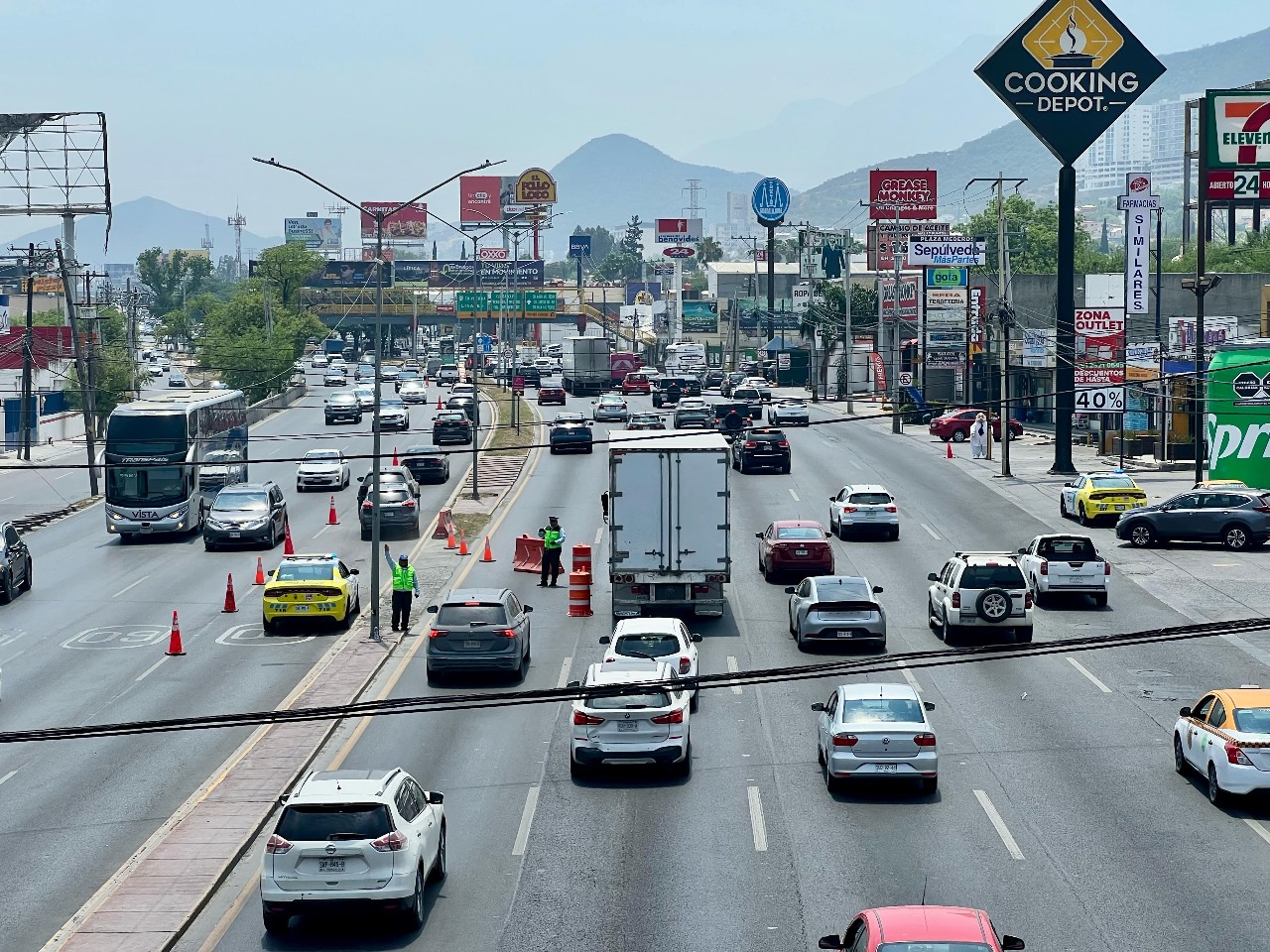 La Dirección de Vialidad y Tránsito de Monterrey implementó este viernes por segundo día consecutivo el carril reversible sobre la Carretera Nacional, con el objetivo de mejorar la movilidad en la zona sur.