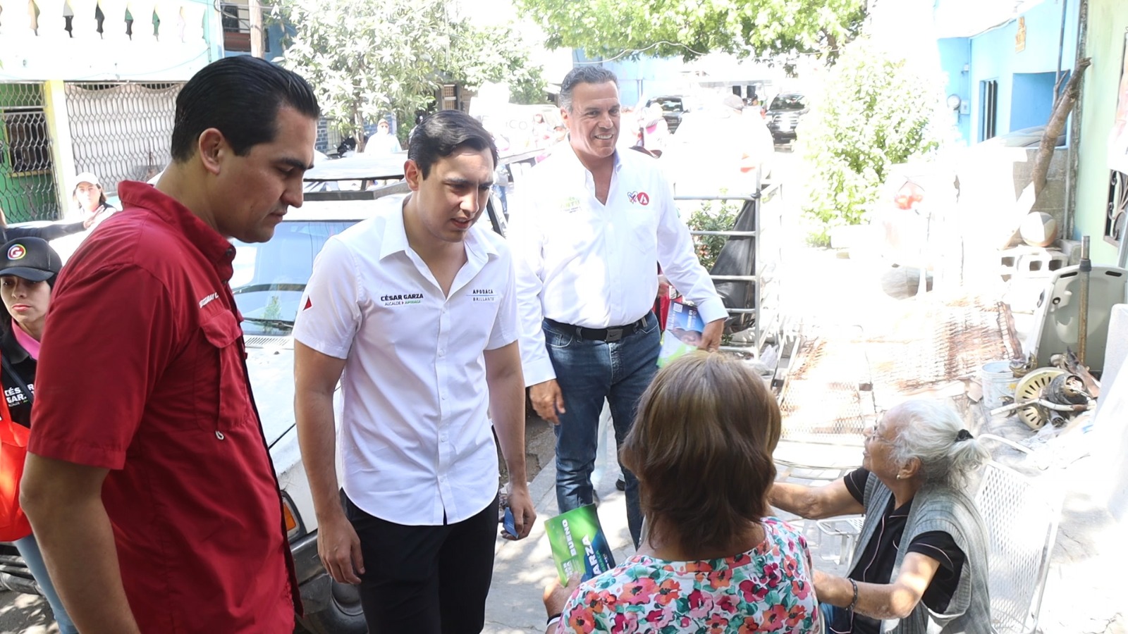 César Garza Arredondo recorrió las calles de la colonia Mujeres Ilustres (Fomerrey IV) en donde realizó dicho compromiso acompañado de Andrés Cantú, candidato a Diputado federal por el distrito 2; Elsa Escobedo, candidata a Diputada local por el distrito 16; y por Karina Barrón, candidata al Senado de la República.