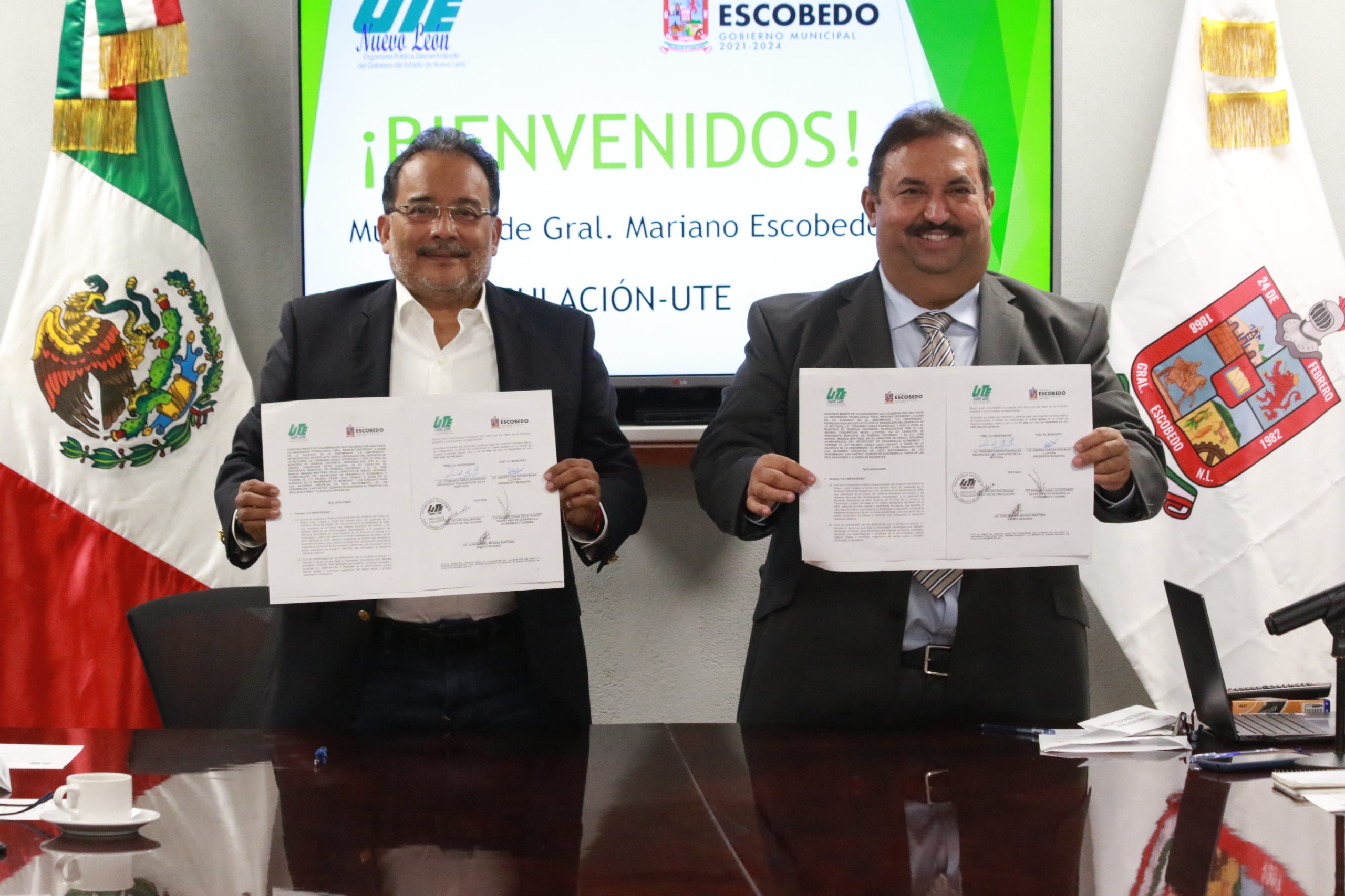 Con la intención de brindar oportunidades laborales a estudiantes en empresas establecidas en Escobedo, el Gobierno Municipal firmó un convenio de colaboración con la Universidad Tecnológica General Mariano Escobedo (UTE).