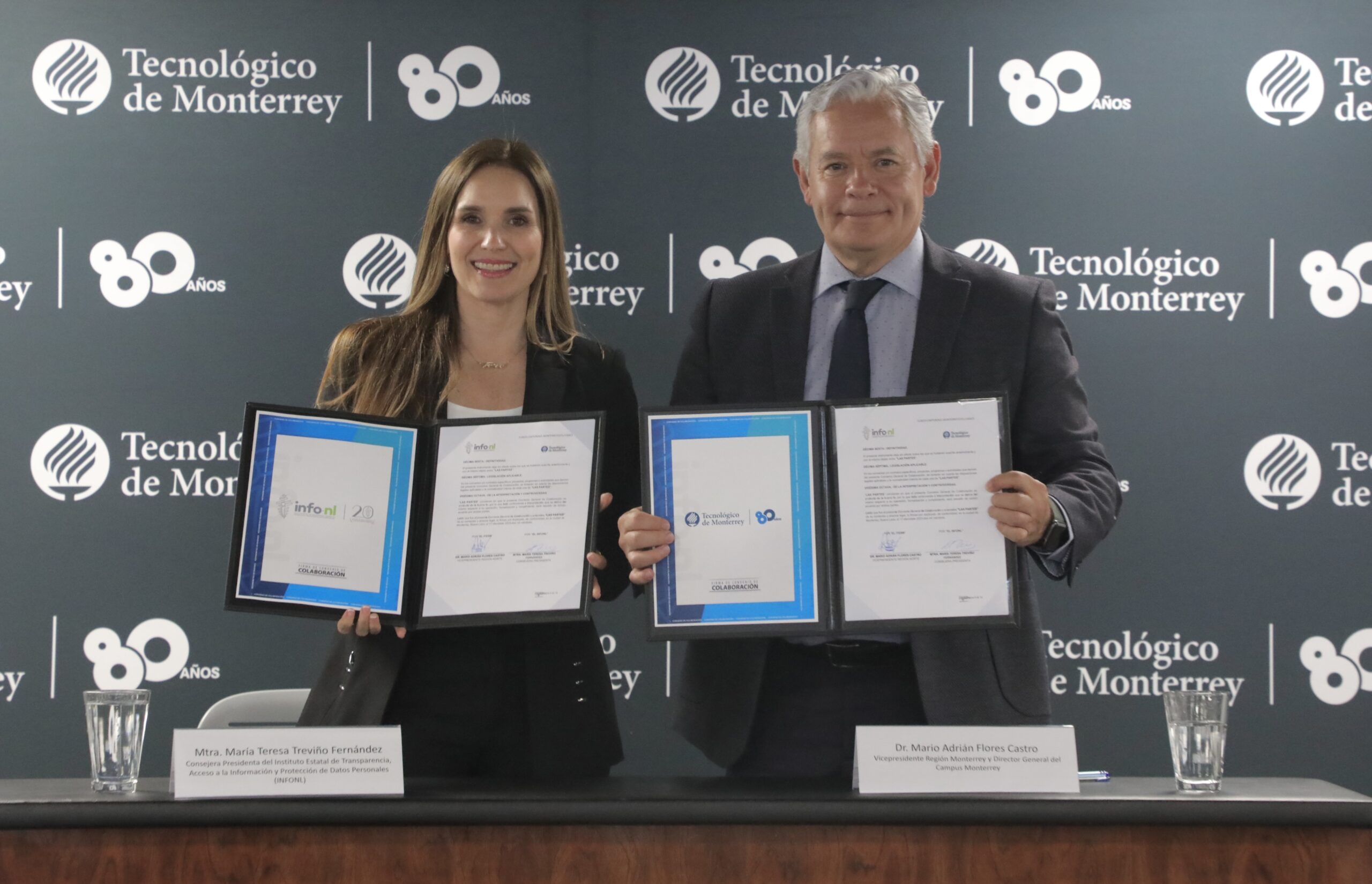 La firma de este acuerdo estratégico fue realizada por la Consejera Presidenta de INFONL, Teresa Treviño Fernández, y Mario Adrián Flores Castro, Vicepresidente Región Monterrey y Director General de Campus Monterrey.