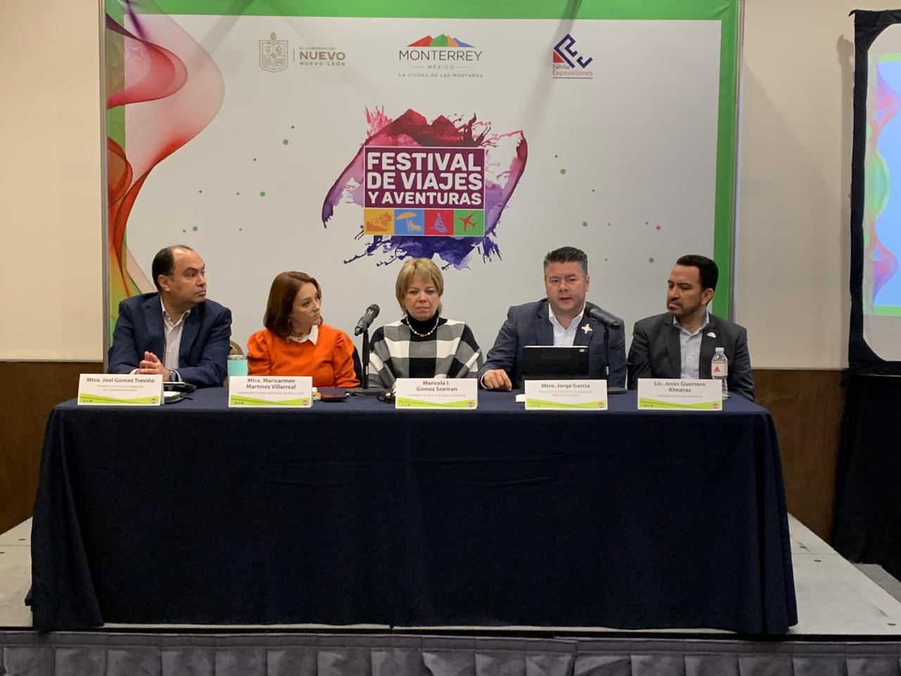 Gómez Treviño participó en conferencia de prensa con otros especialistas en turismo para informar sobre la Expo VI Festival de Viajes y Aventuras y el IV Congreso Nacional de la Industria Turística (CONIT), que se realizarán del viernes 14 al domingo 17 de marzo en CINTERMEX.