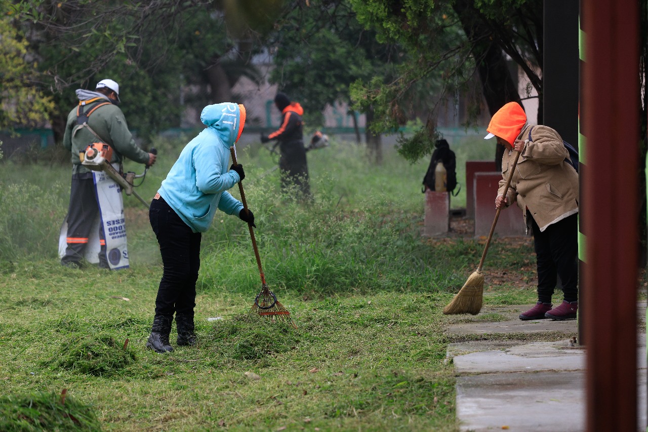 Los trabajos de deshierbe se ampliaron al interior de la Escuela Primaria “Raúl Betancurt Rodríguez”, cuya directora Juana Balleza, agradeció el apoyo.