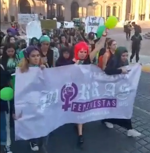 El grupo feminista llegó al Palacio de Gobierno y durante varios minutos las mujeres compartieron sus testimonios e historias de vida. Se mantuvieron de manera pacífica sentadas frente al recinto d gobierno, el cual fue fuertemente custodiado por elementos de Fuerza Civil.