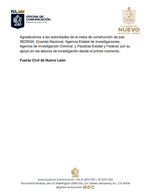 En el comunicado la corporación policiaca no hace mención a este caso ni al anterior registrado la semana pasada el kilómetro 73 de la carretera Linares San Roberto, aunque si expresa su profundo pesar y solidaridad con las familias de sus compañeros.