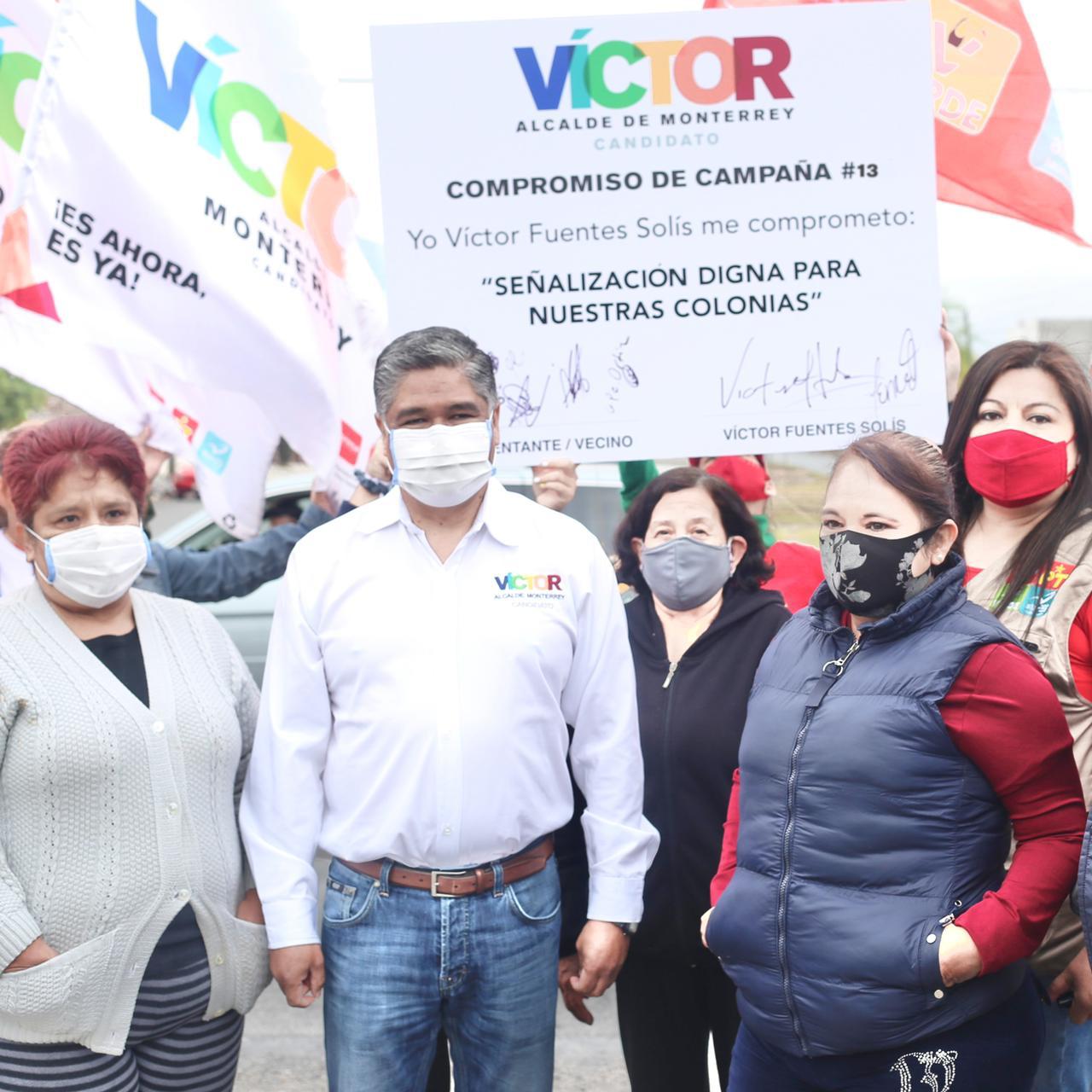 El candidato a la alcaldía de Monterrey por la Coalición Juntos Haremos Historia en Nuevo León, Víctor Fuentes Solís, se comprometió a destinar el primer año de su administración 30 millones de pesos para señalización vial.
