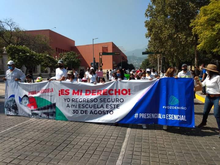 PADRES DE FAMILIA Y NIÑOS EXIGEN CON MARCHA REGRESAR A CLASES EL 30 DE AGOSTO
