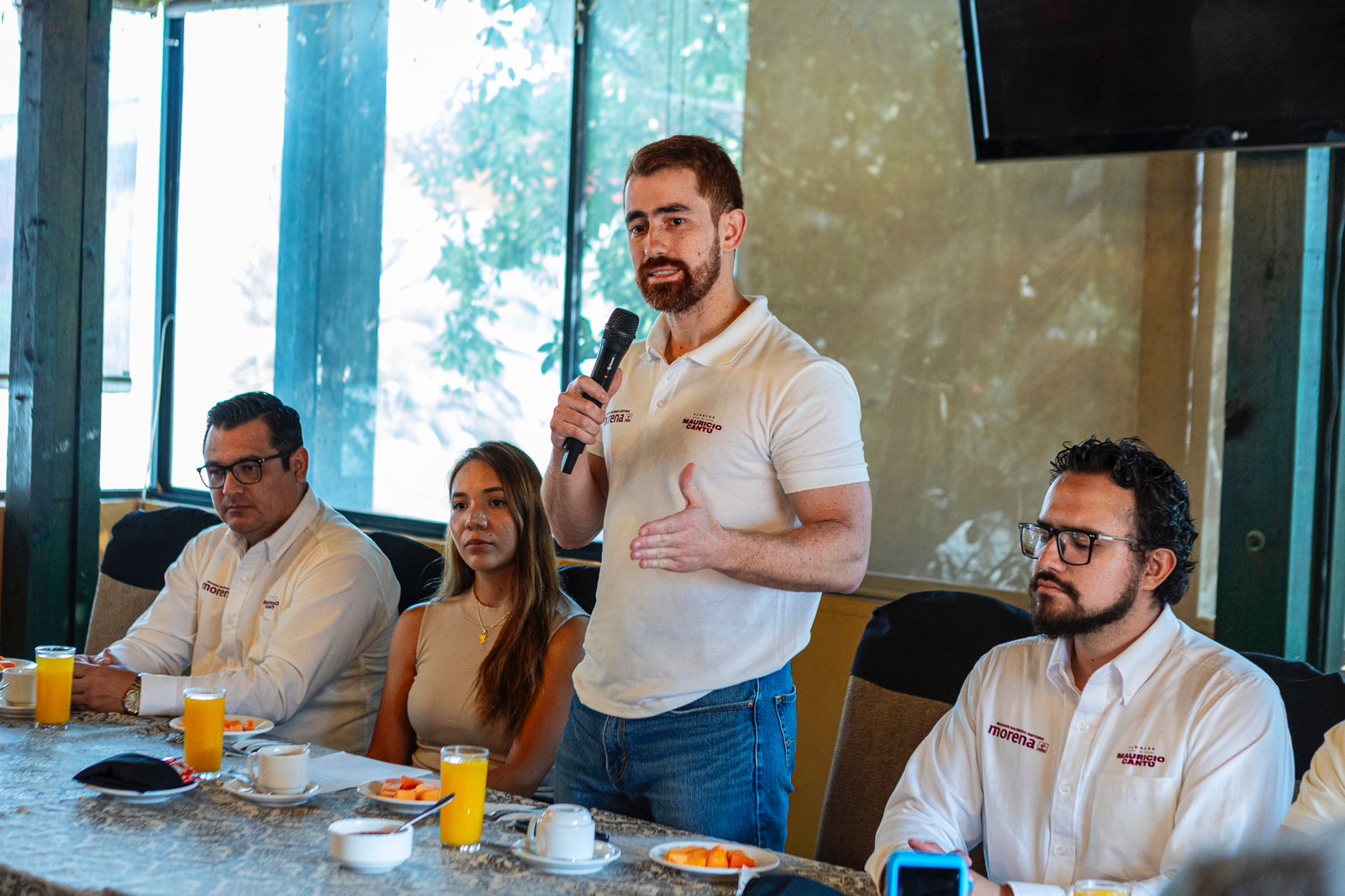 Mauricio Cantú, candidato a la alcaldía de Monterrey por la Coalición “Sigamos Haciendo Historia”, presentó ante los medios de comunicación sus ejes rectores de gobierno para el desarrollo integral la capital de Nuevo León.