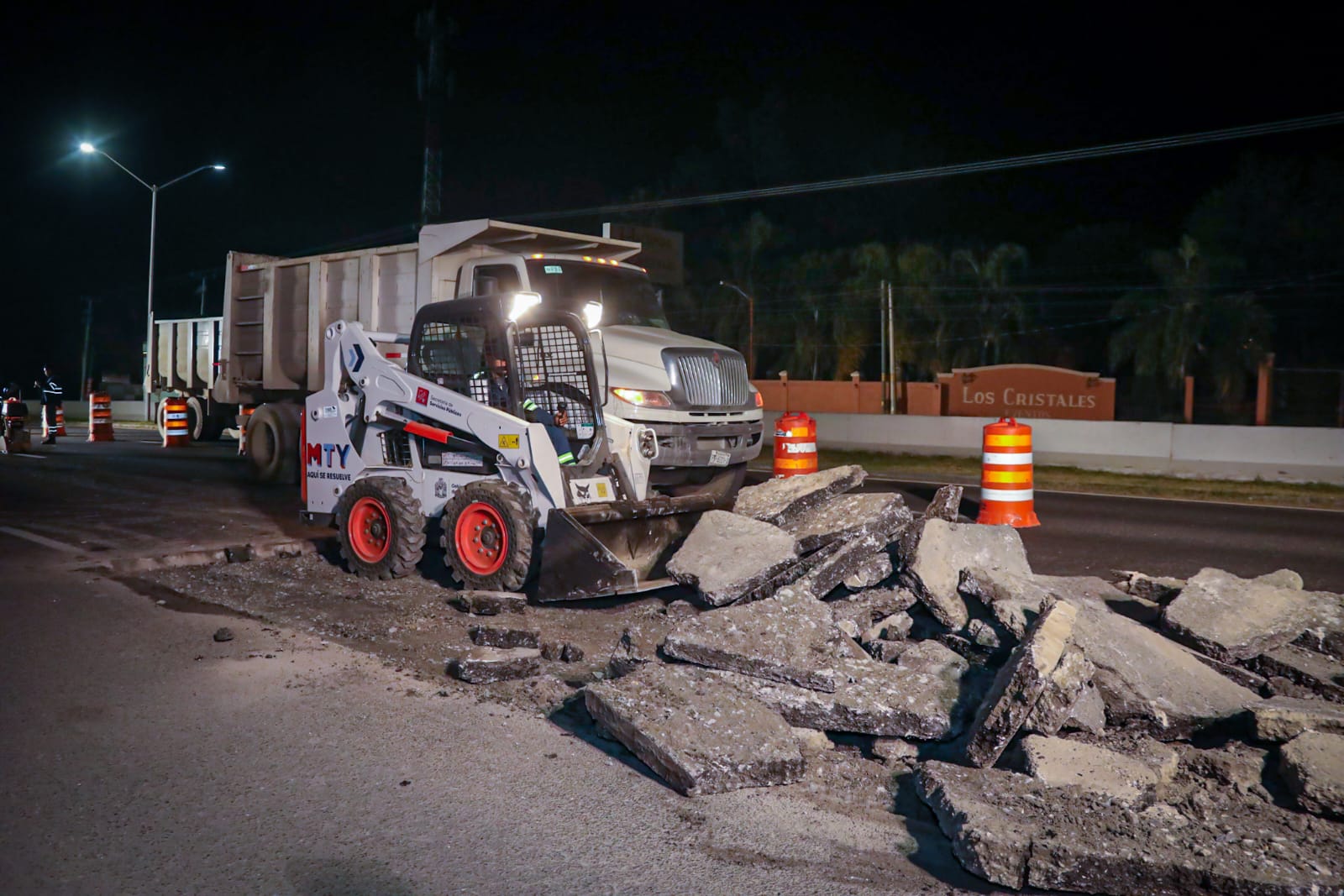Los trabajadores de Servicios Públicos de Monterrey trabajan 24/7 para mantener en buenas condiciones el pavimento de calles y avenidas de la ciudad.