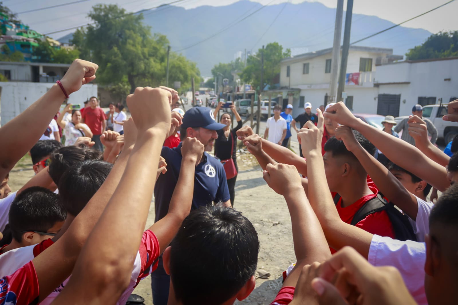Como parte de sus actividades proselitistas, De la Garza Santos acudió al campo deportivo ubicado en la falda del Cerro La Campana, para platicar con los poco más de 50 jóvenes que integran el club, además de incentivarlos para sus próximos juegos dentro de la MFL Monterrey Futbol League.