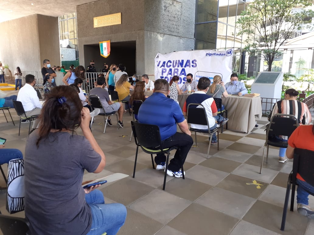 Monterrey, Debido a que en el quinto y último día para tramitar un amparo ante la justicia federal para que menores de 18 años puedan acceder al programa de vacunación anti Covid, cientos de padres de familia abarrotaron los bajos del Congreso del Estado para hacer la solicitud.