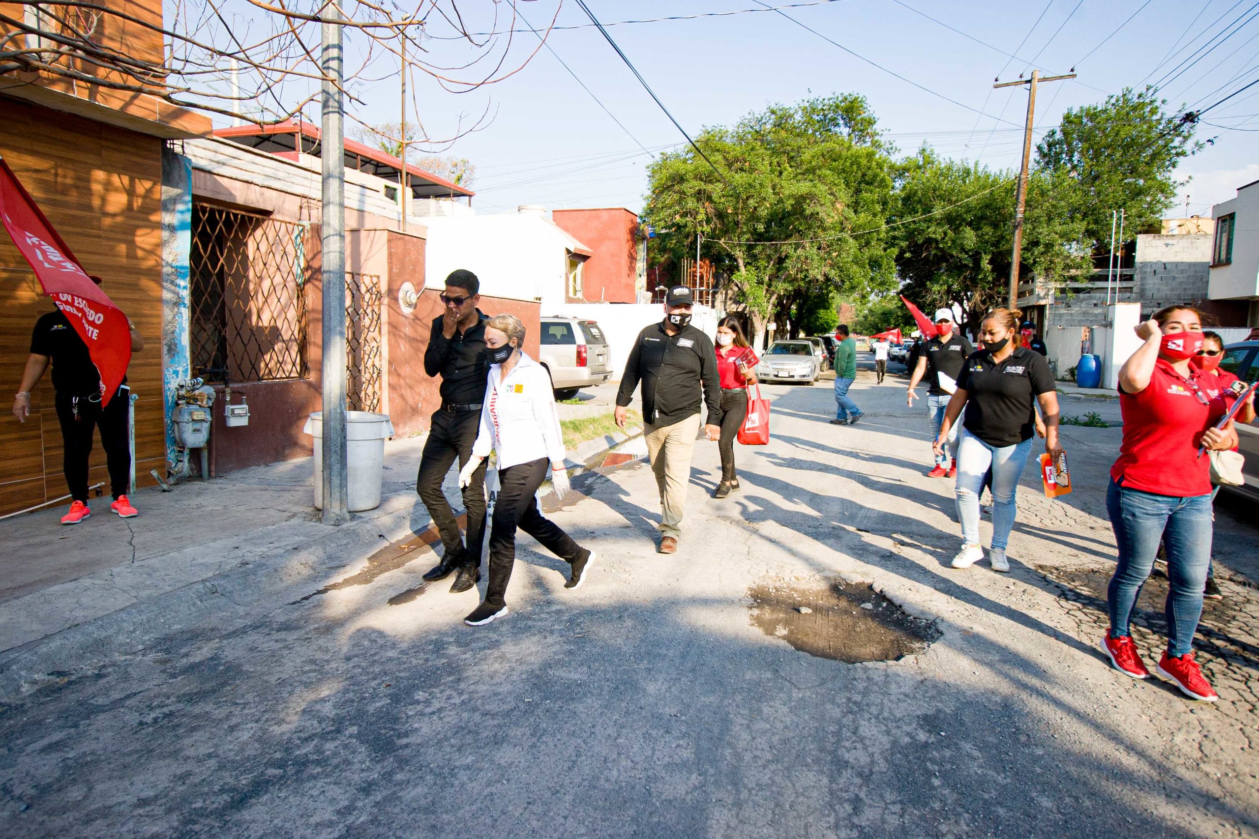 Asimismo, la candidata prisitas mencionó que se tiene el registro de seis colonias que requieren pavimentación nueva, destacando El barrio Quintana Roo y el Barrio Baja California, en la colonia Alianza Real y cinco colonias que requieren de reconstrucción de su pavimento y no recarpeteo, como son Haciendas del Topo e Infonavit Topo Grande.