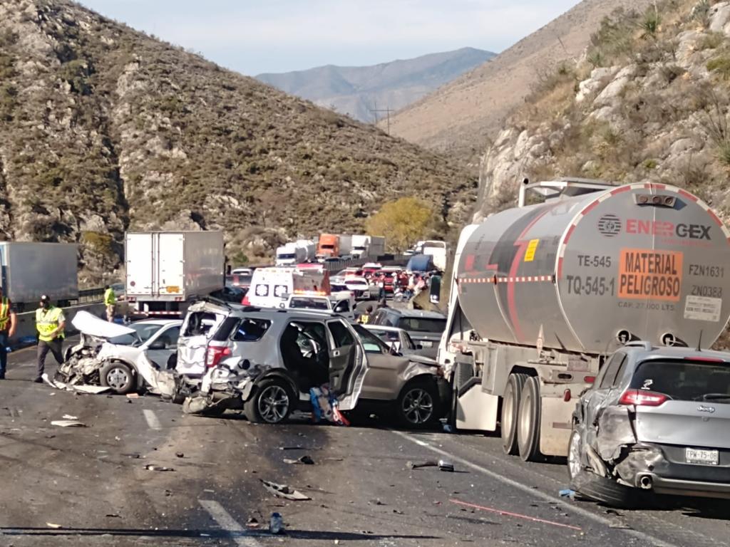 Al menos cuatro personas perdieron la vida esta tarde luego de que un tráiler sin frenos se impactara contra 16 vehículos a la altura del kilometro 230 de la carretera 57 con dirección a Saltillo.