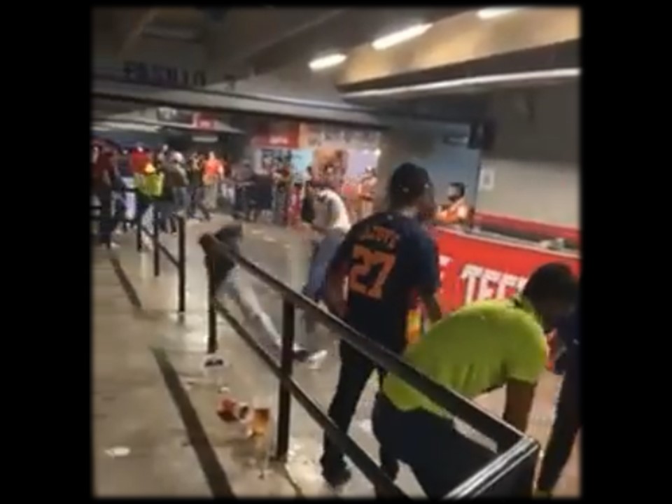 Durante el video se logra apreciar casi al final de la grabación como un hombre es empujado por otro y el primero, estrella su cabeza contra un barandal, pero posteriormente es ayudado por otras personas para alejarlo de la zona de conflicto.
