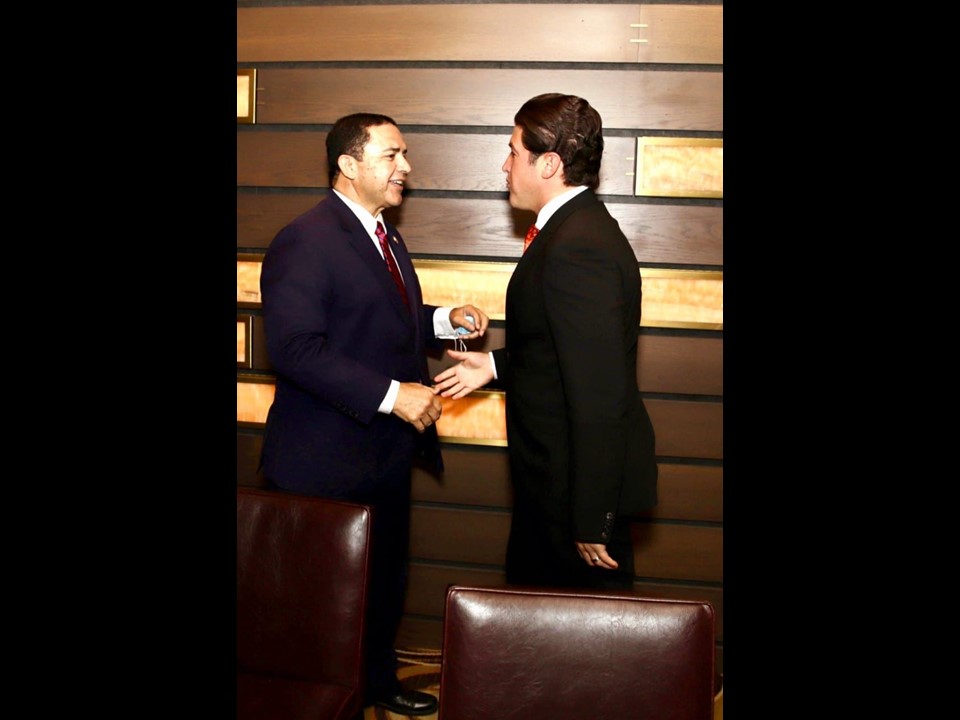 Durante su visita a Washington, el gobernador electo de Nuevo León, Samuel García Sepúlveda sostuvo una reunión-cena con el congresista Henry Cuellar sobre la estrategia para la vacunación a toda la población contra el covid-19 y la construcción de la carretera La Gloria-Colombia.