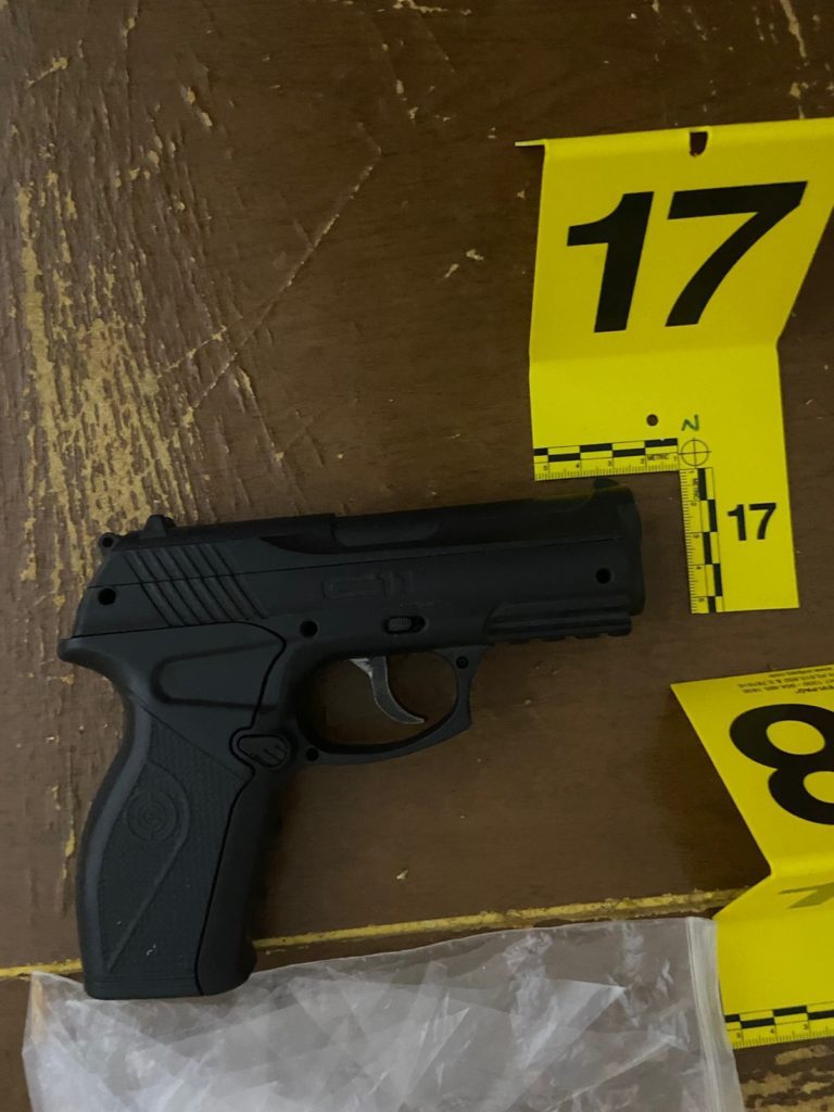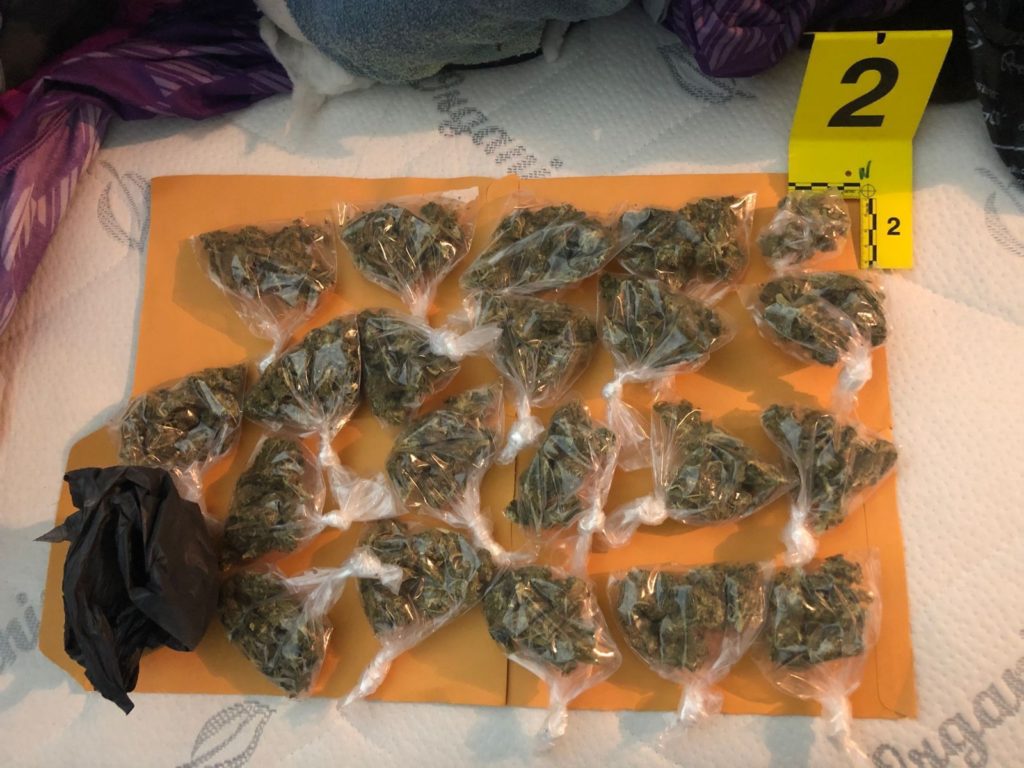 Tres horas y media duro la acción de los ministeriales, Oscar de 48 años, quedo detenido le encontraron en posesión de una navaja color gris, una bolsa de plástico negra con 21 envoltorios de plástico transparente con hierba verde y seca en su interior, un celular color negro, un tolete color negro (de los usados por los policías).